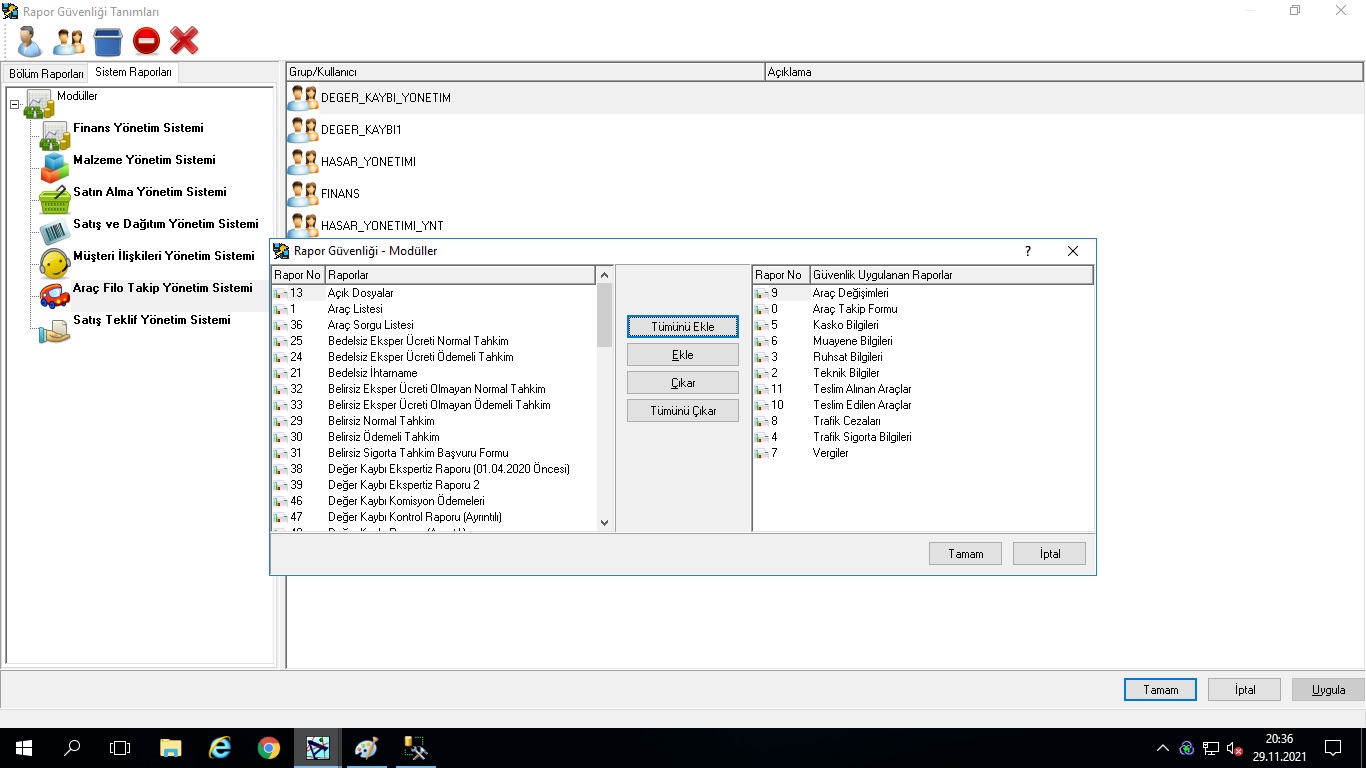 Görmek istediğiniz raporu sistem yöneticinize bildirin.