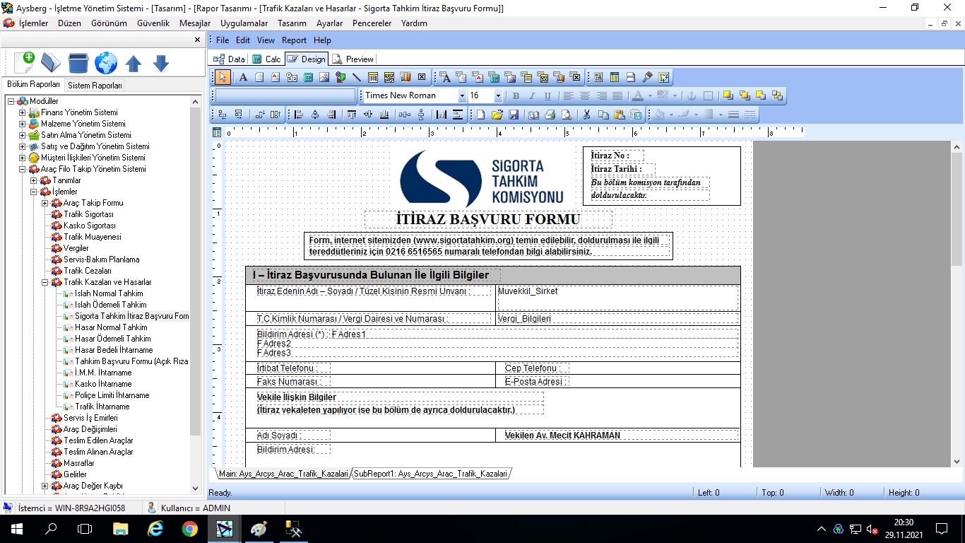 Aysberg ERP yazılımın “Bedeni Hasar Yönetim Sistemi” ve “Finans Yönetim Sistemi” modüllerini kullanıyoruz. Esnek ve güçlü raporlama özelliği var. Bedeni hasar ile ilgili her türlü veriyi (müşteri görüşmeleri, süreç yönetimi, komisyon ödemeleri v.b.) sistemde takip edebiliyoruz. Müvekkil adına gelen ödemeler, müvekkile yapılan ödemeler ve kesintiler sistem tarafından otomatik hesaplanıyor. Kar/Zarar raporlarını almak çok kolay.